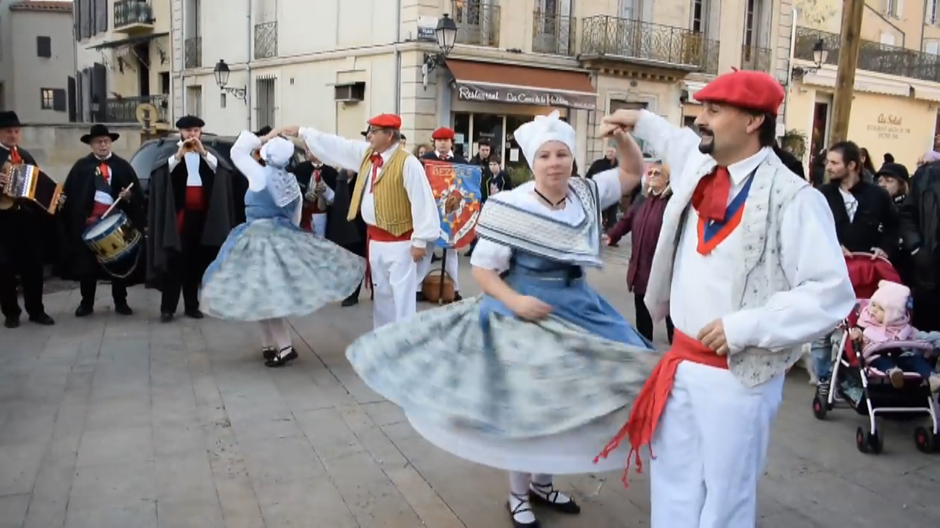 Après les danses, place de la Madeleine, nous avons participé au défilé traditionnel de Noel accompagné de nos musiciens, dans les rues de Béziers.